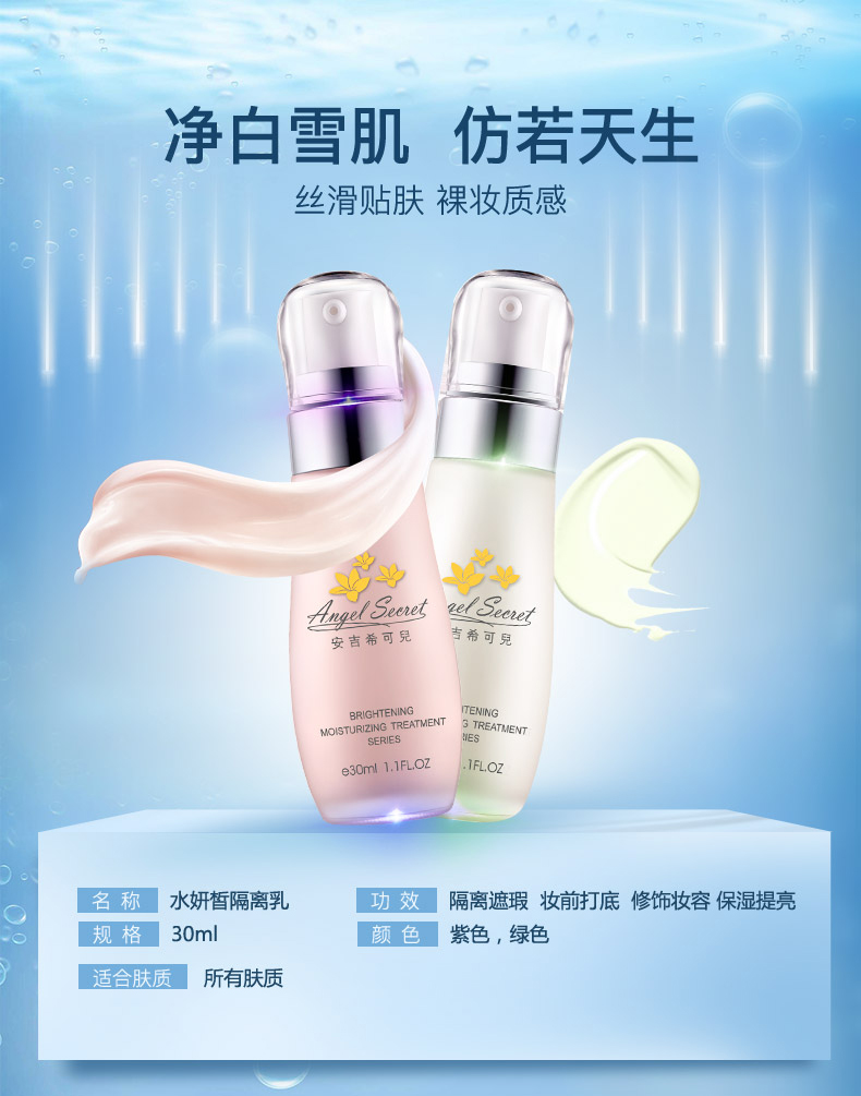 安吉希可儿 水妍皙隔离乳(紫)30mlSPF25,PA++修正偏黄及暗沉肤色,白...