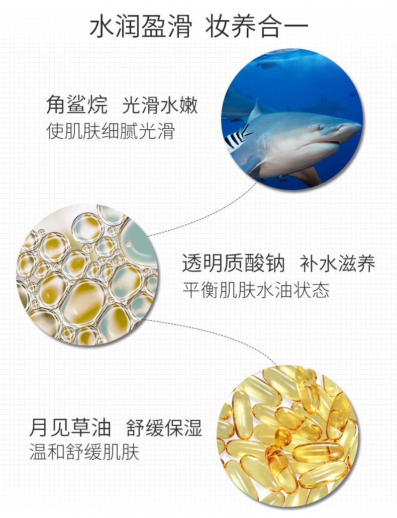 产品成分:水、环聚二甲基硅氧烷、C12-15 醇苯甲酸酯、丁二醇、甲氧基肉桂酸乙基己酯、碘丙炔醇丁基氨甲酸酯。