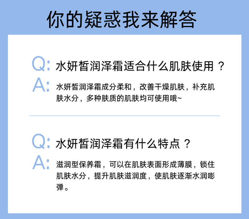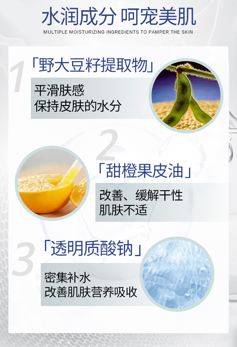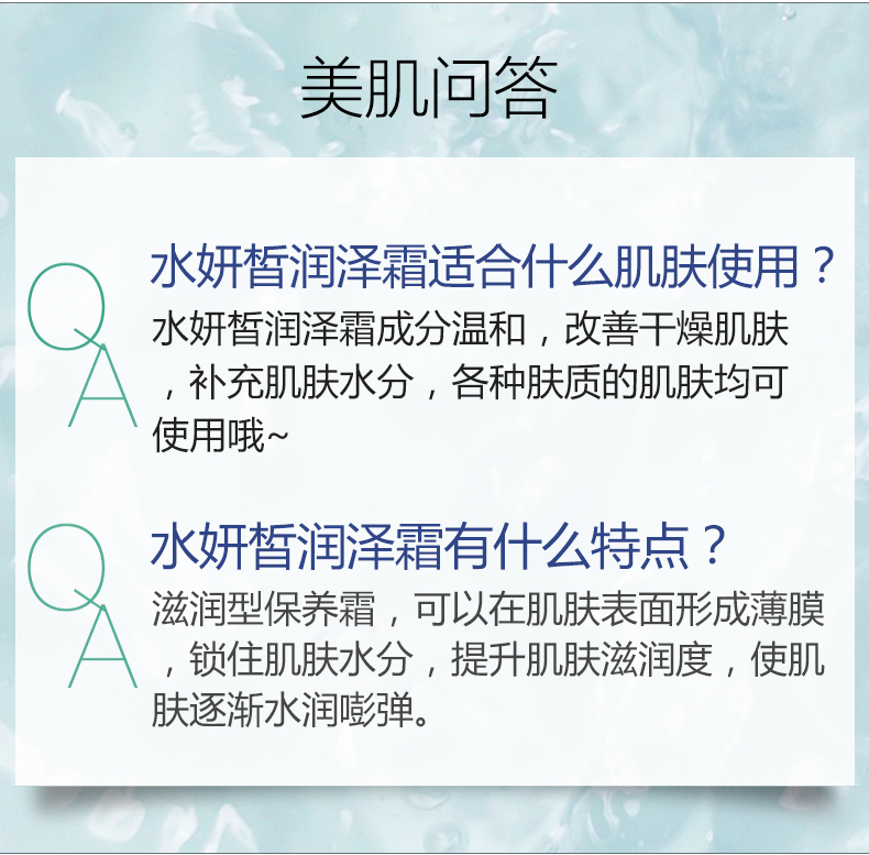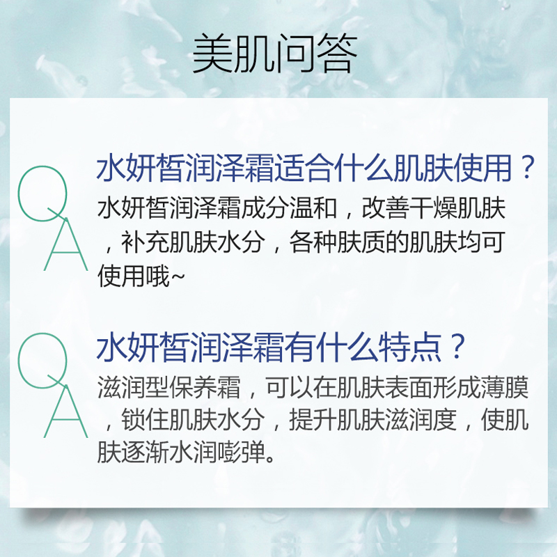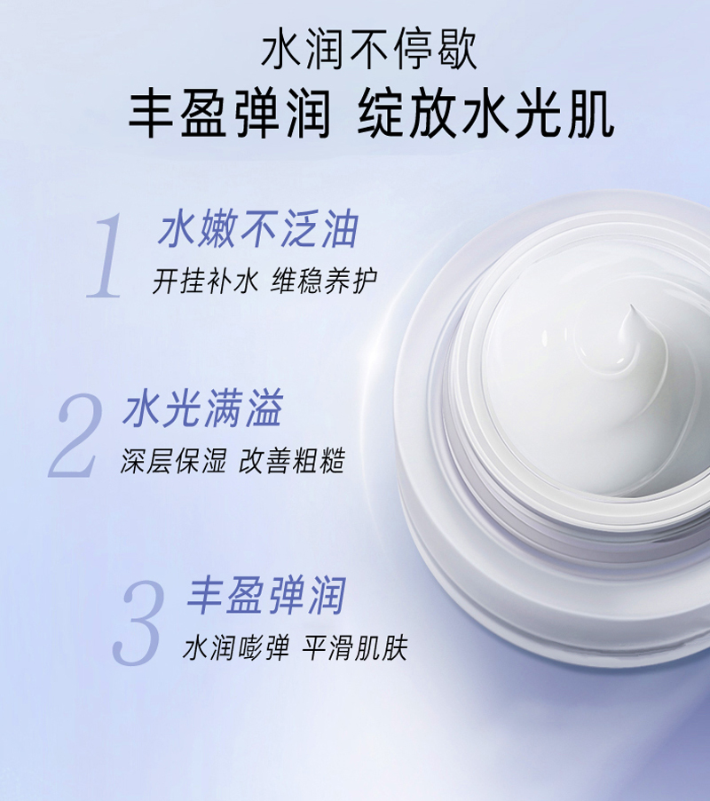 适合肤质:任何肤质 尤其适合干燥缺水。细纹肌肤。