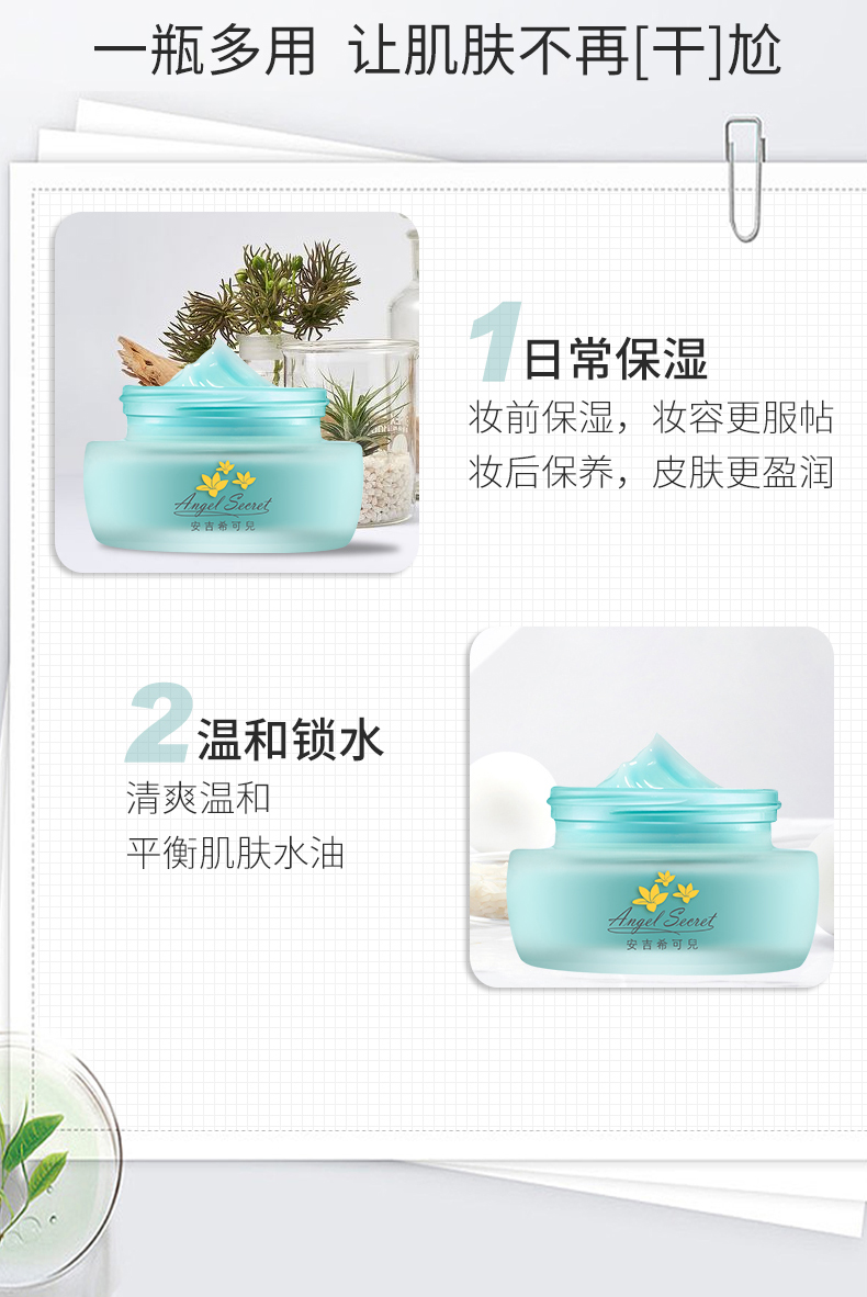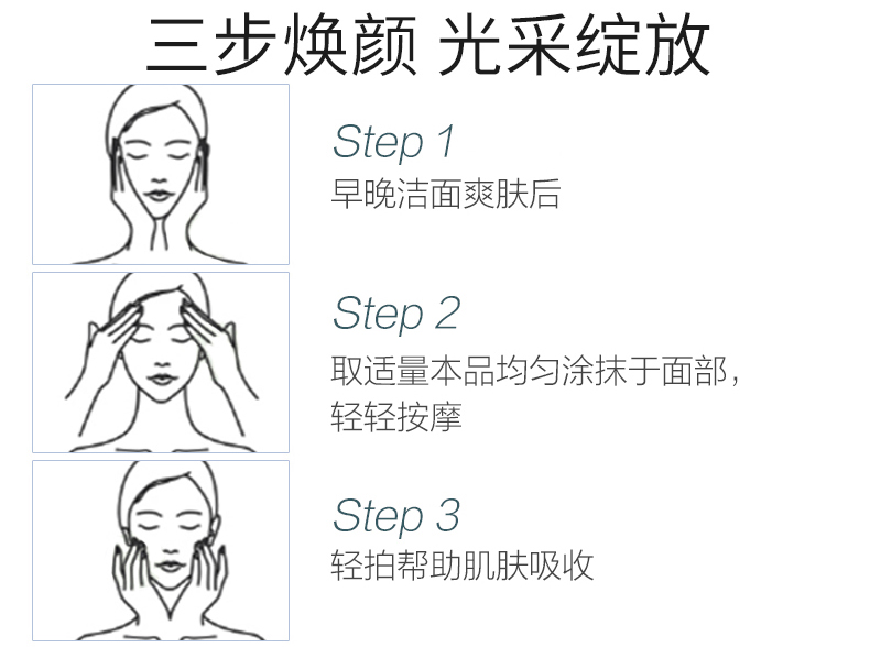 使用方法:洁肤爽肤后,取适量均匀涂抹全脸。