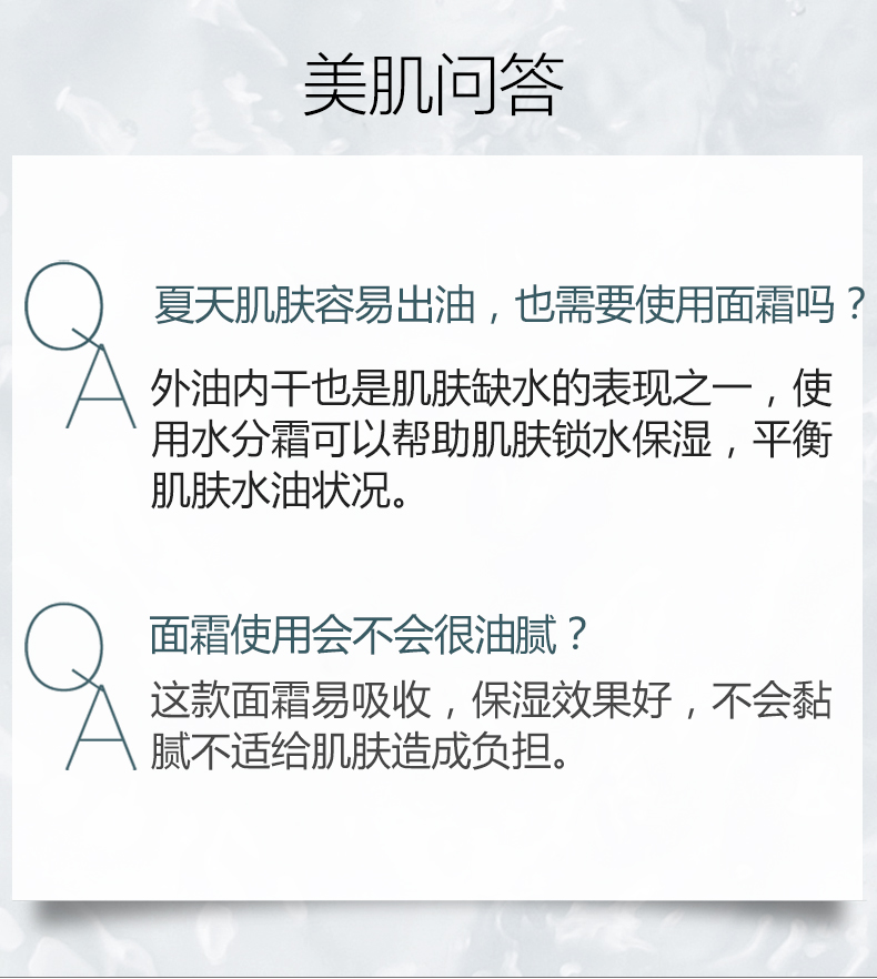 适合肤质:任何肤质尤其适用油性缺水肌肤。