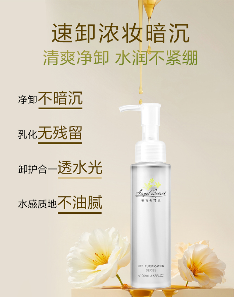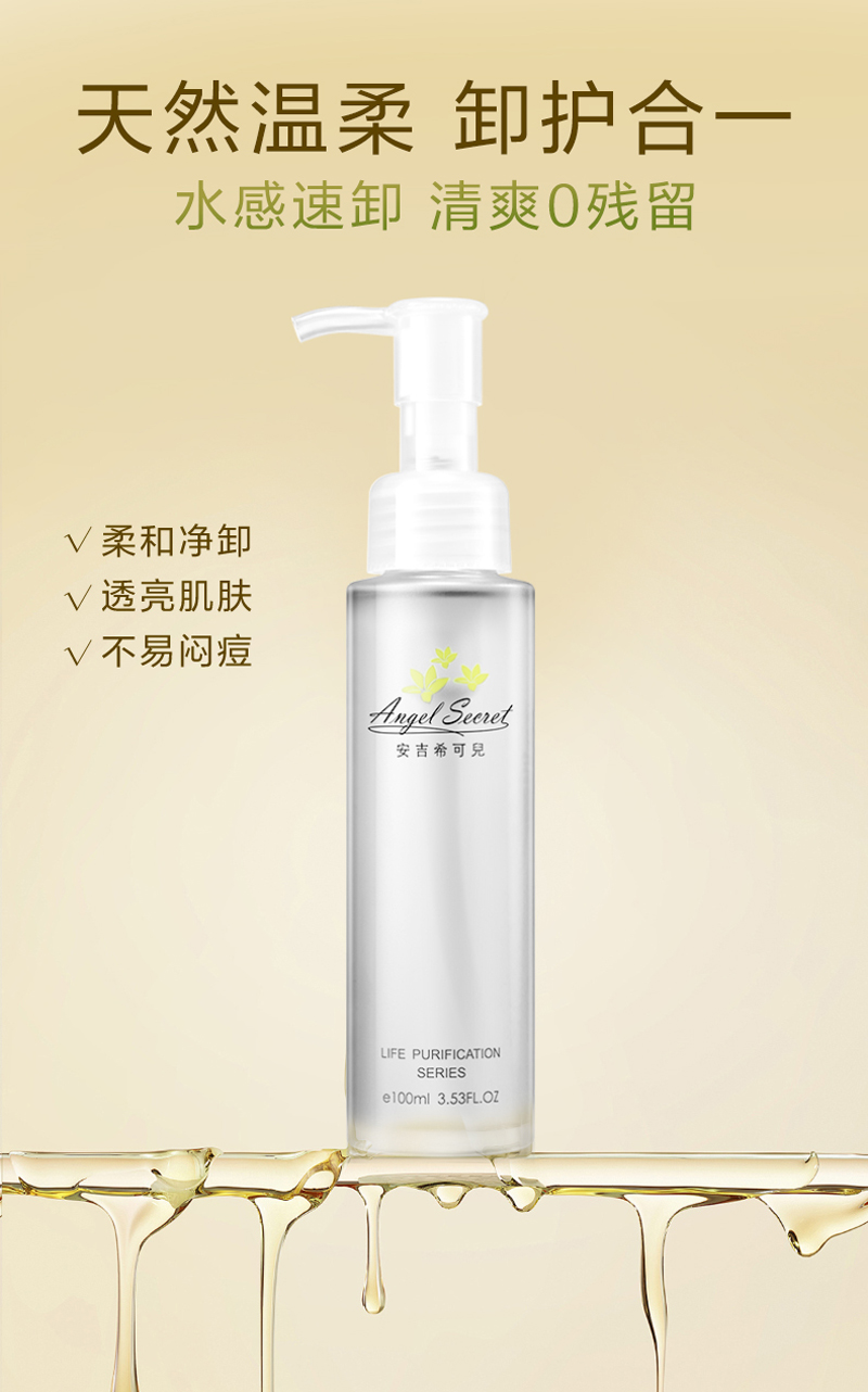 安吉希可儿 净透卸妆油100ml 卸妆养护二合一、水感速卸、清爽零残留、柔和净卸、透亮肌肤、不易闷痘