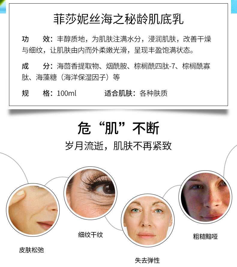 菲莎妮丝 海之秘龄肌底液100ml 润而不腻、弹润肌肤、平抚细纹