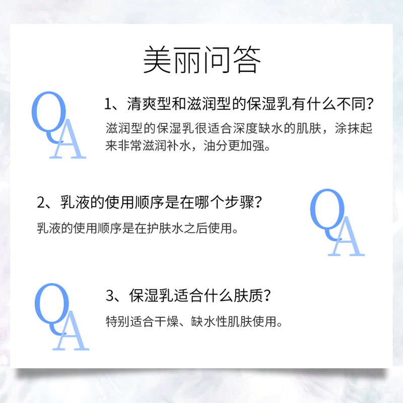 使用方式:取适量涂抹于全脸,轻拍或按摩至吸收即可。