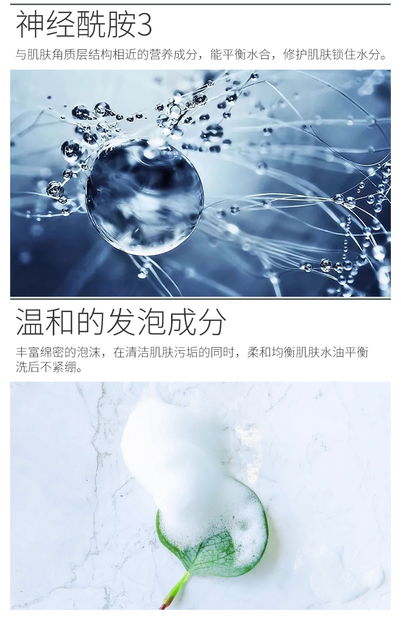 产品特点:蕴含丰富绵密的泡沫,在深层清洁肌肤污垢的同时,能柔和均衡肌肤水油比例!特别添加巨藻中的醣醛酸精华,可补充肌肤所需水分,令肌肤洗后柔软无紧绷,拥有健康粉嫩弹性美肌。