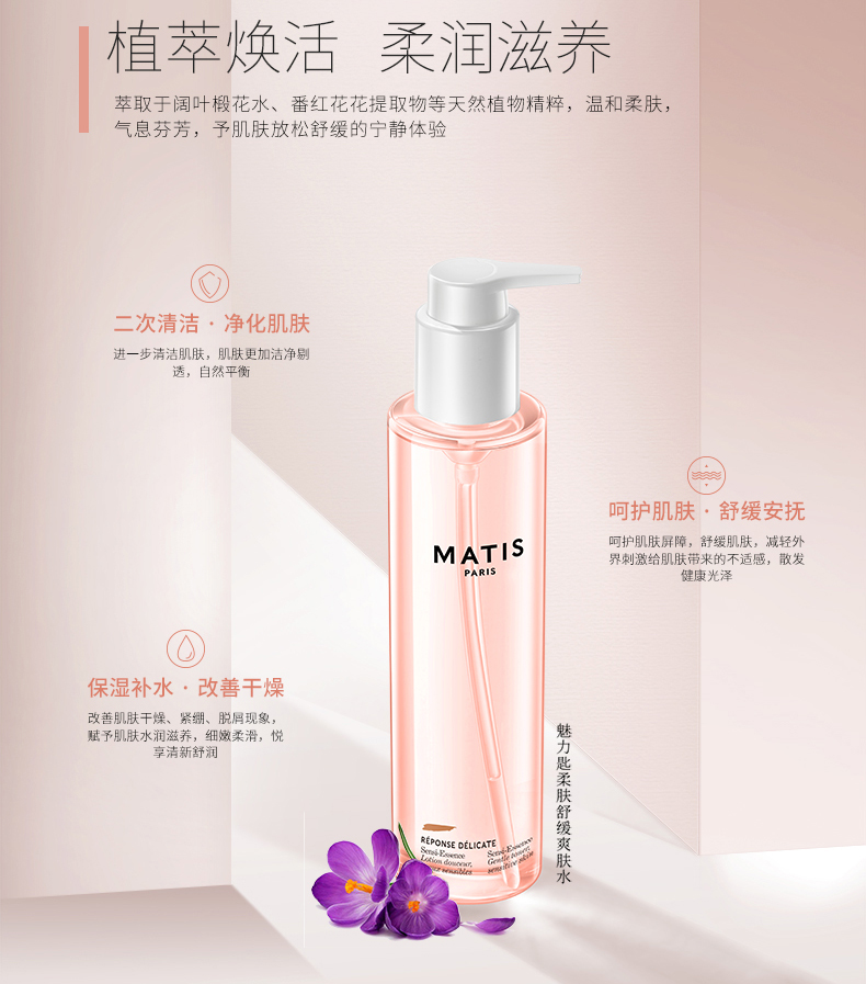 MATIS魅力匙 妍护润养爽肤水200ml 不含酒精成分,二次清洁,补水滋润,柔...