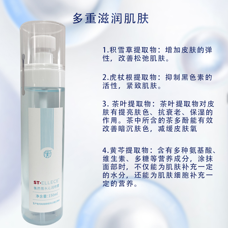 3、轻巧设计,携带方便,随时随地让肌肤喝饱水,适合任何肌肤、任何季节使用。夏季还可喷于全身,尤其对晒后肌肤有很好的舒缓果。