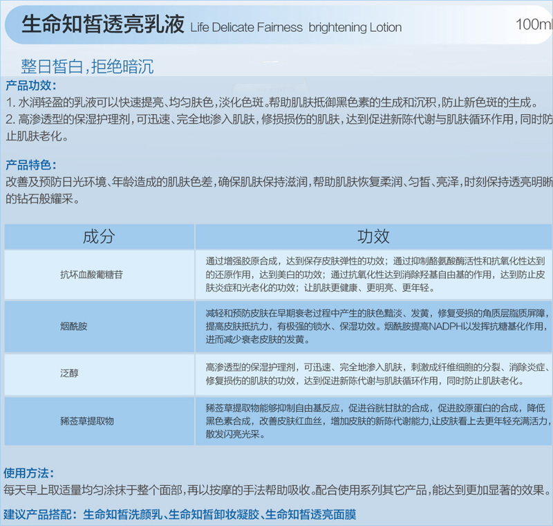 安吉希可儿 生命知皙透亮美容液100ml(润肤水)改善肌肤色素,减少干燥暗沉现象...