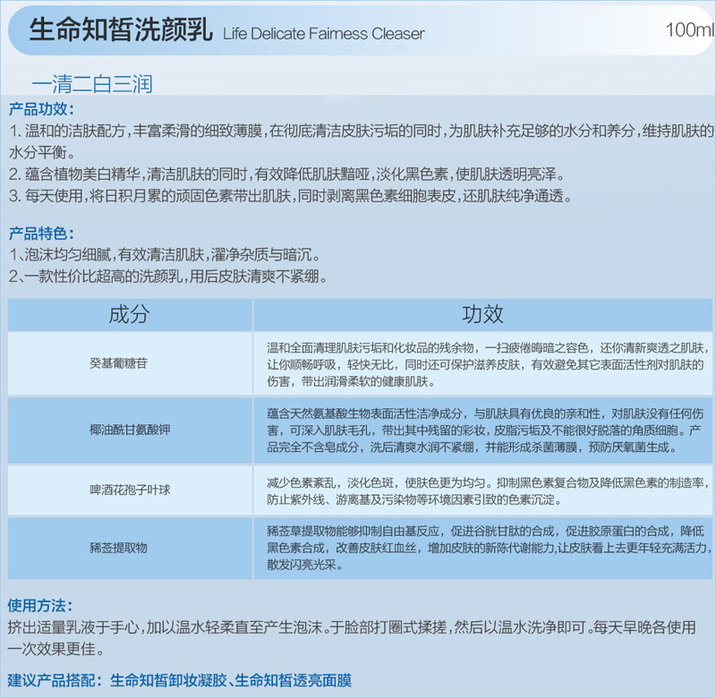 安吉希可儿 美皙洗颜乳300ml 泡沫丰富,深层清洁,改善黯哑,淡化黑色素,亮白...