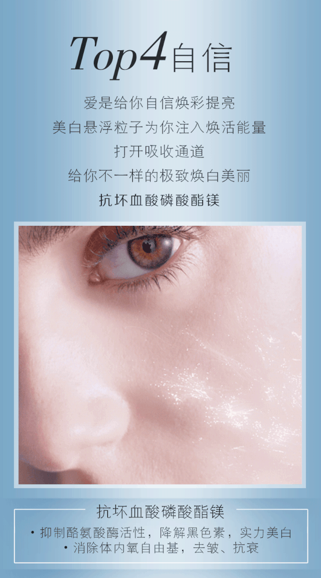 3.焕白亮颜:淡化黑色素,均匀肤色,深层焕白肌肤,整体提亮肌肤。