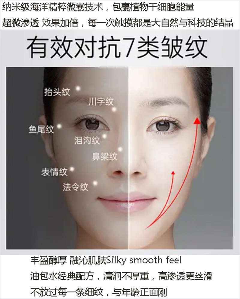 产品功效:植物干的有成分刺激肌肤干不断的被锁定、复制、分裂,时光倒转,再展青春娇颜。