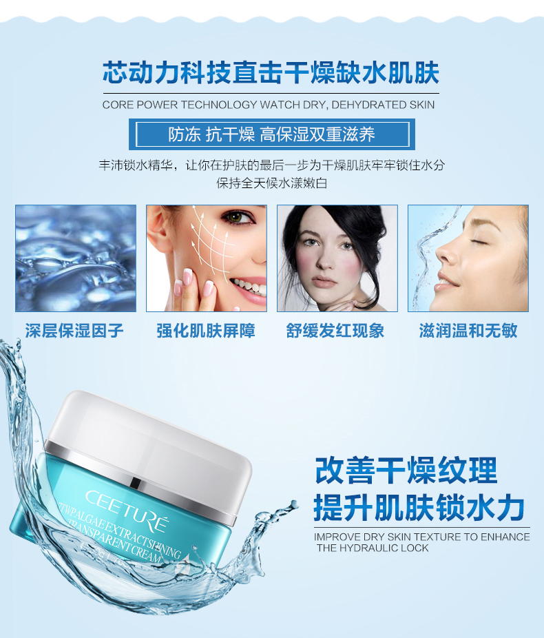 锁住肌肤饱满水分,强化肌肤保护屏障高倍润泽肌肤,提升白天对干燥气候的抵抗(干性肌肤以及严寒、干燥气候环境的选择)
