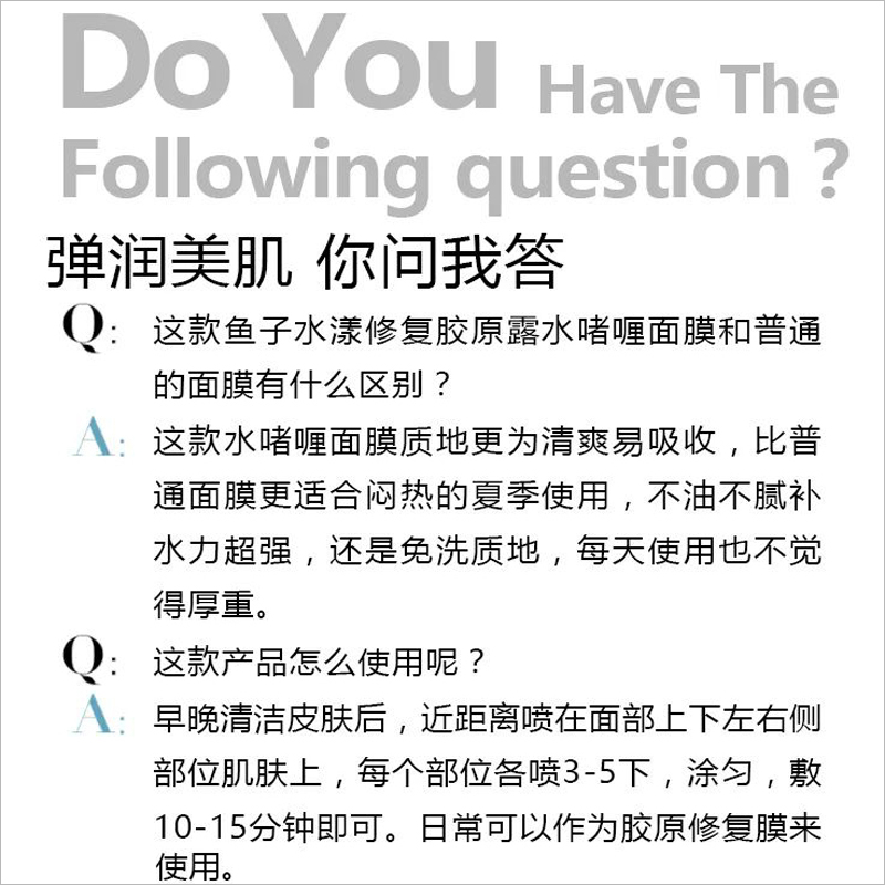 2.胶原睡眠面膜:每个部位各喷5下,稍做按摩保留入睡,每天使用果更佳。