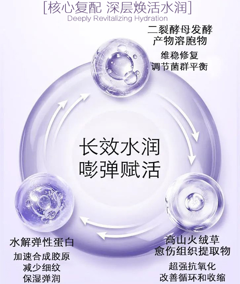 2.水润光彩:持续补水、锁水,肌肤水润弹性。