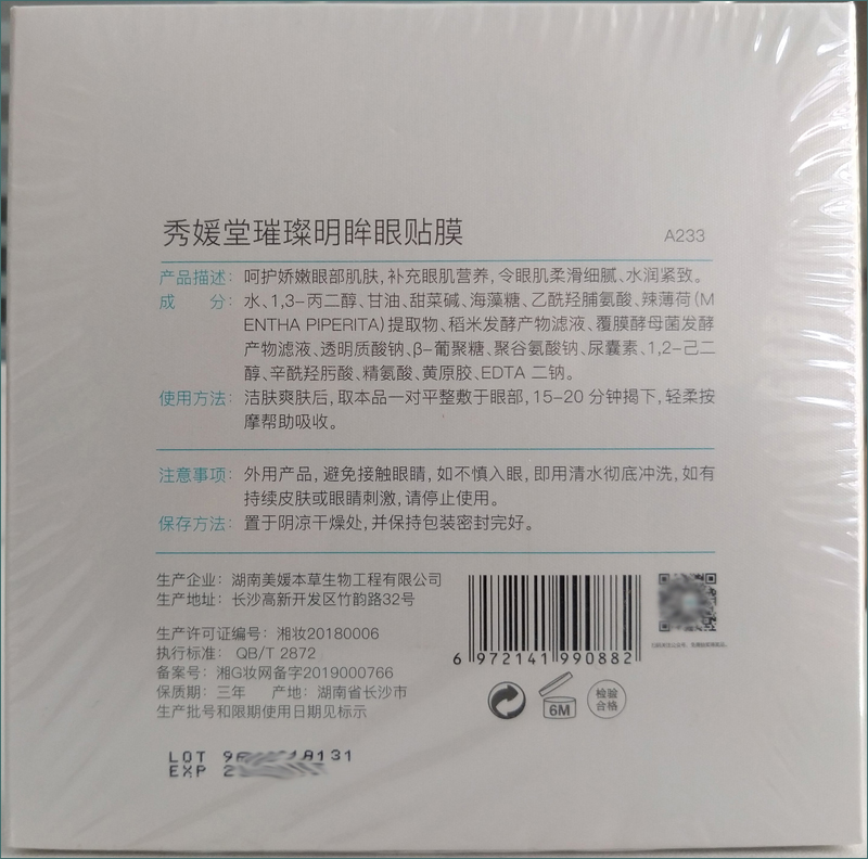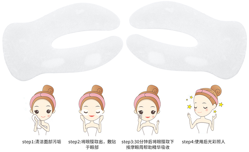 使用方法:取出后紧密贴于眼周,10-15分钟后取下,轻轻按摩直至完全吸收,使眼部肌肤更加紧致饱满,满足熬夜人群提亮肌肤的需求。长期使用,效果更佳。