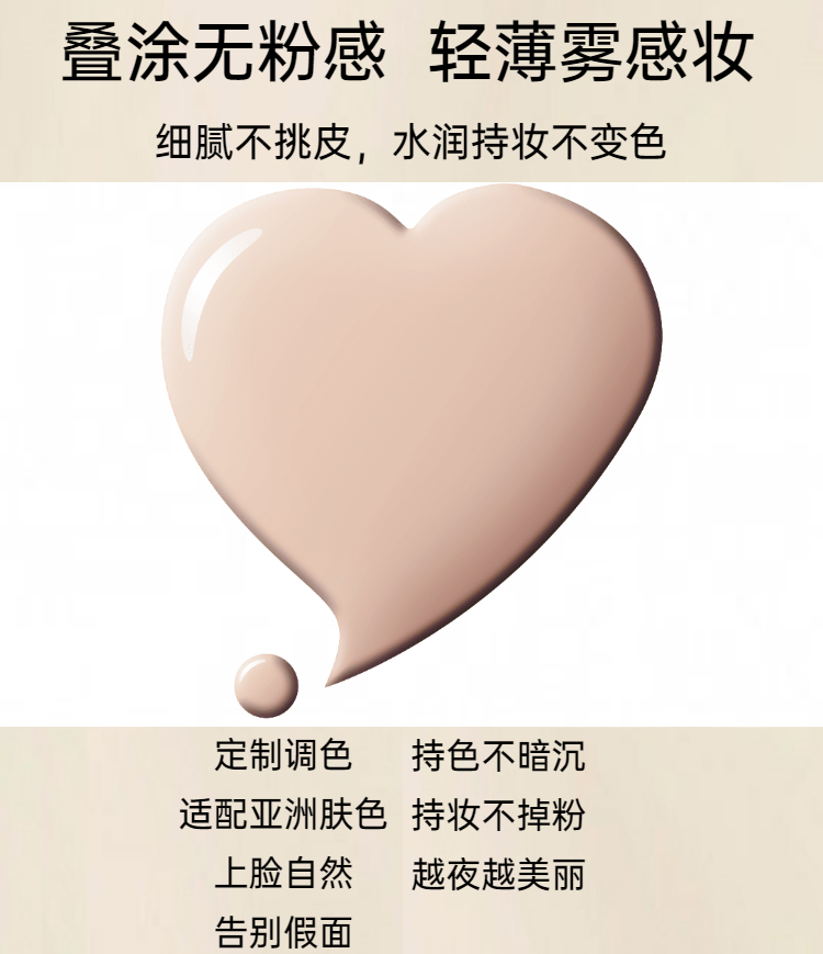 1、细致乳液质地,如“裸妆”魔法师,带来细腻如丝的美好触感,瞬间令肌肤呈现自然无瑕,粉嫩透白。