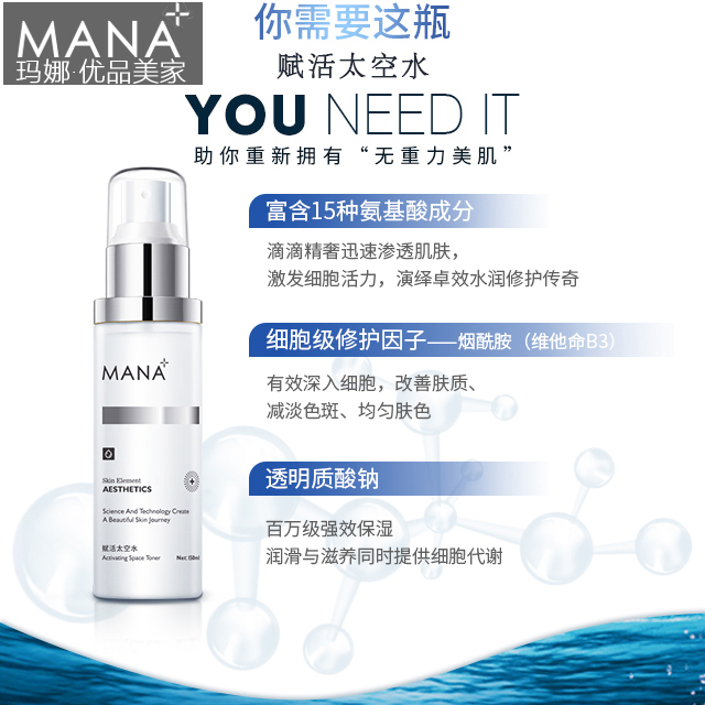 玛娜 水活弹嫩精华液45ml 密集补水、修护损伤、弹力紧实、充盈水润