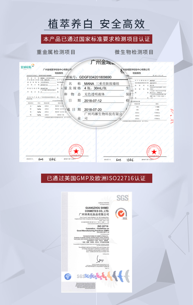 使用方法:Ⅰ型使用完毕后使用Ⅱ型,Ⅱ使用完毕使用Ⅲ型,三支依次使用。早晚爽肤后各取适量涂于面部,轻柔均匀按摩至吸收即可,搭配玛娜产品使用,果更佳。
