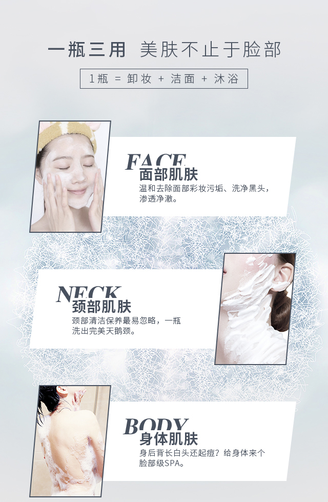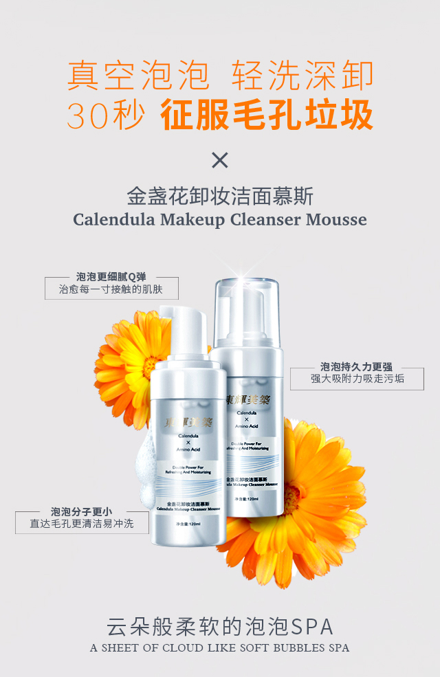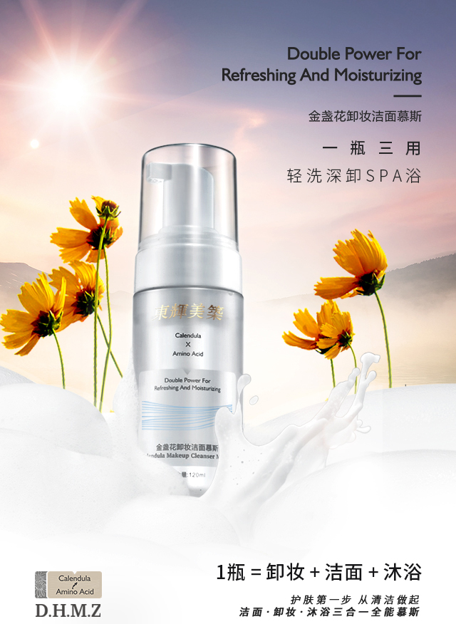 产品功:集卸妆、清洁为一体,泡沫绵密细腻,卓溶解面部彩妆及毛孔油污,特别融入金盏花精萃和氨基酸经典洁肤成分,温和洁净同时为肌肤注入充沛水分养分,深透保湿,舒润肌层,令肌肤清透柔滑不紧绷,绽放健康光洁之美。