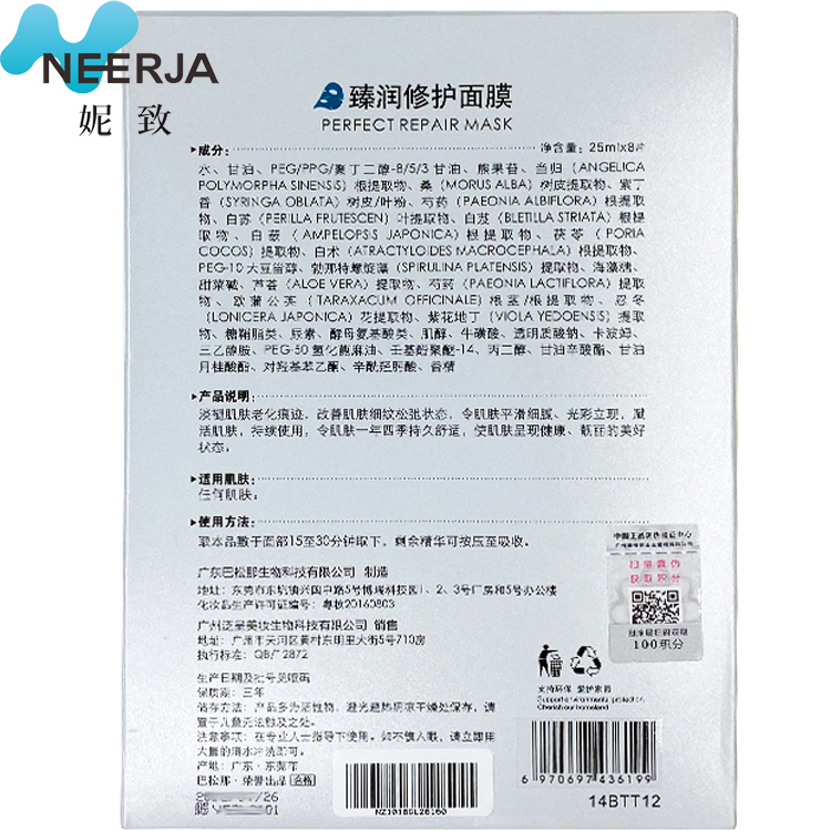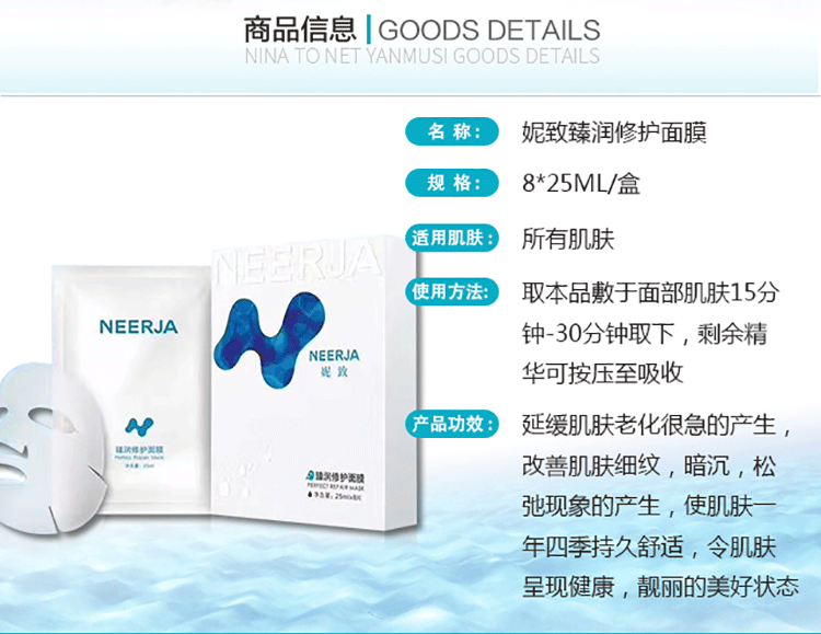 妮致 瞬采美肌面膜28g*8片(臻润修护面膜)天然冰丝膜布、柔软服帖、滋养焕新、饱满弹性、水润细滑、改善干燥粗糙、舒缓修护、安抚脆弱敏肌