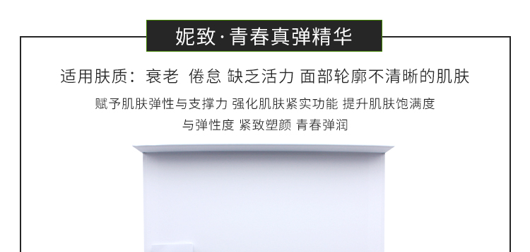 产品功效:赋予肌肤弹性与支撑力,改善肌肤紧实功能,提升肌肤饱满度与弹性度,紧致塑颜,青春弹润。
