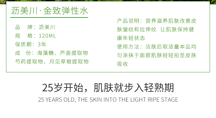 Lemition沥美川 菁致弹润水120ml(金致弹性水)补充营养、增强弹性,改善皱纹、拉伸纹