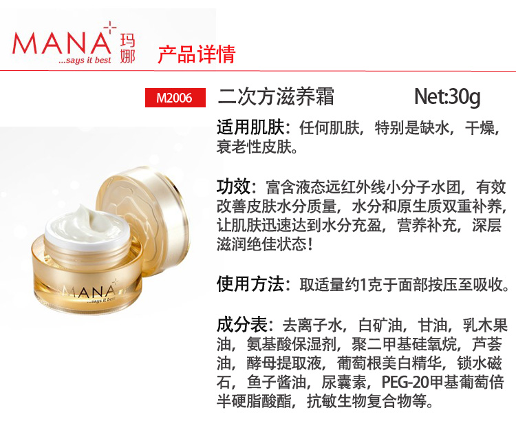 玛娜 水活弹嫩精华液45ml 密集补水、修护损伤、弹力紧实、充盈水润