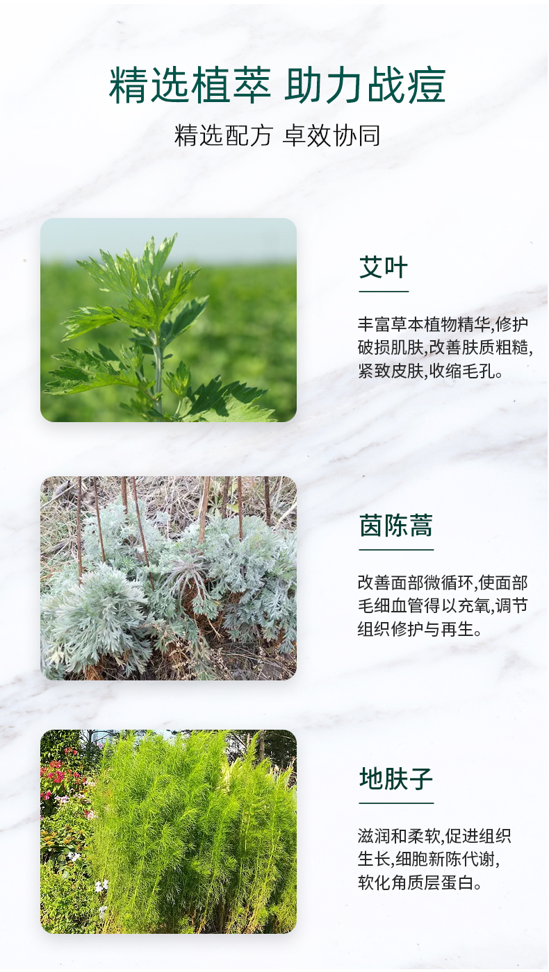 产品功效:有效祛除痘痘、座疮,防止粉刺形成;调节皮脂过度分泌,长期使用能很好的调节皮脂分泌,控油并收细毛孔,光滑肌肤。对因痘痘造成的皮肤粗糙及痘印有很好的修复作用。