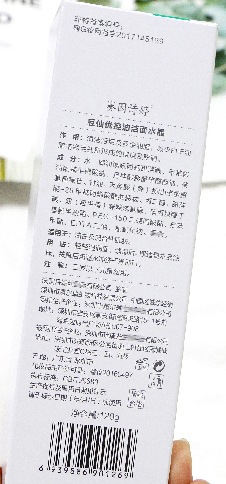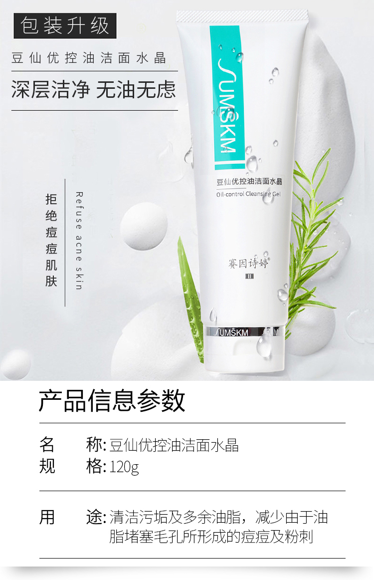 赛因诗婷 豆仙优控油洁面啫喱120g