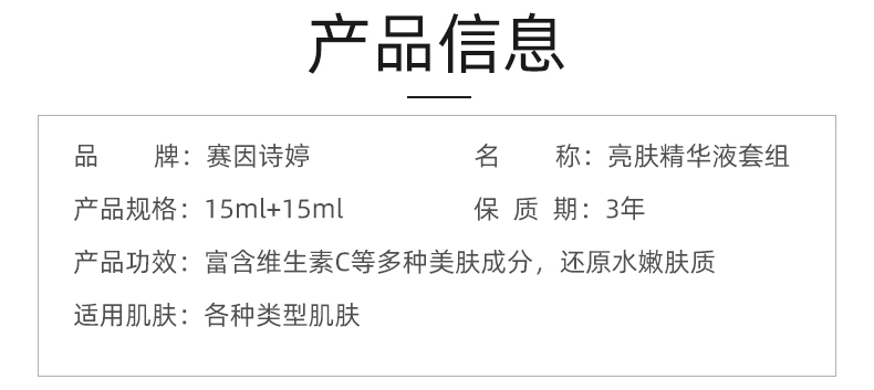 赛因诗婷 亮肤精华液套组15ml*2支