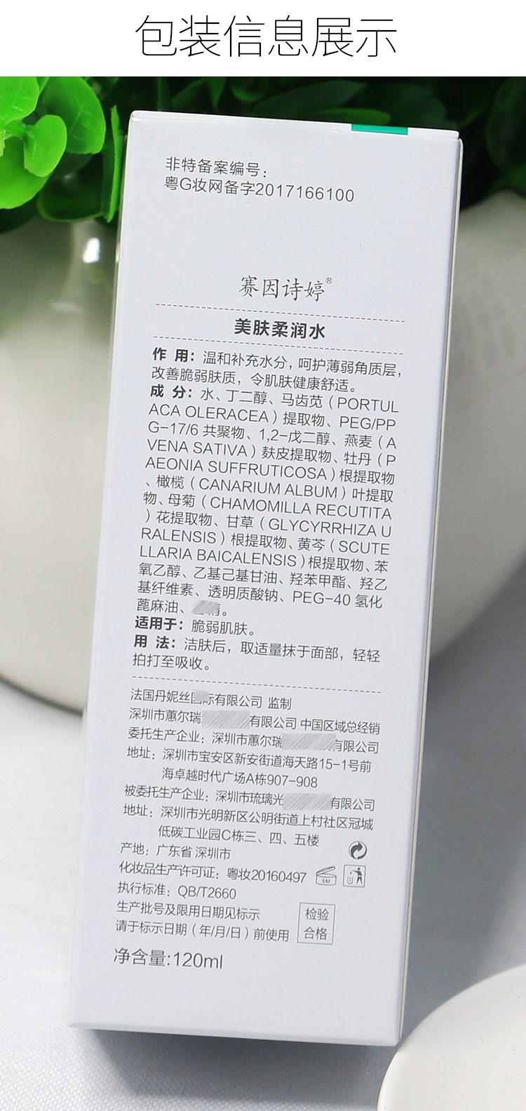 使用方法:洁肤后,取适量抹于面部,轻轻拍打至吸收。