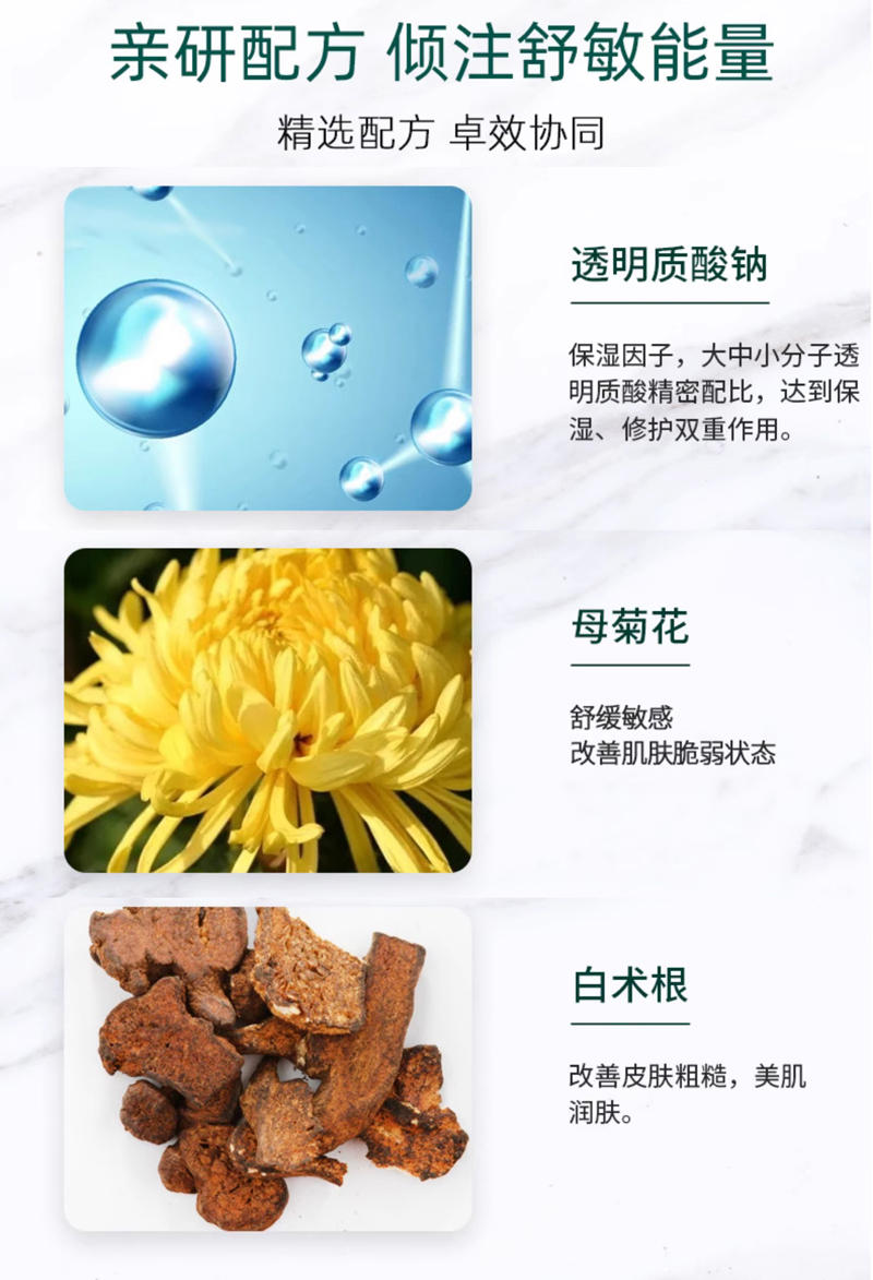 产品功效:补水保湿,舒缓修护,改善肌肤干燥、紧绷等状态, 令肌肤水润舒适。