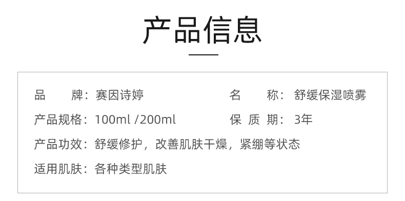 赛因诗婷 舒缓保湿喷雾200ml 一喷舒缓红敏、雾感均匀、轻松保湿、改善敏弱/干燥