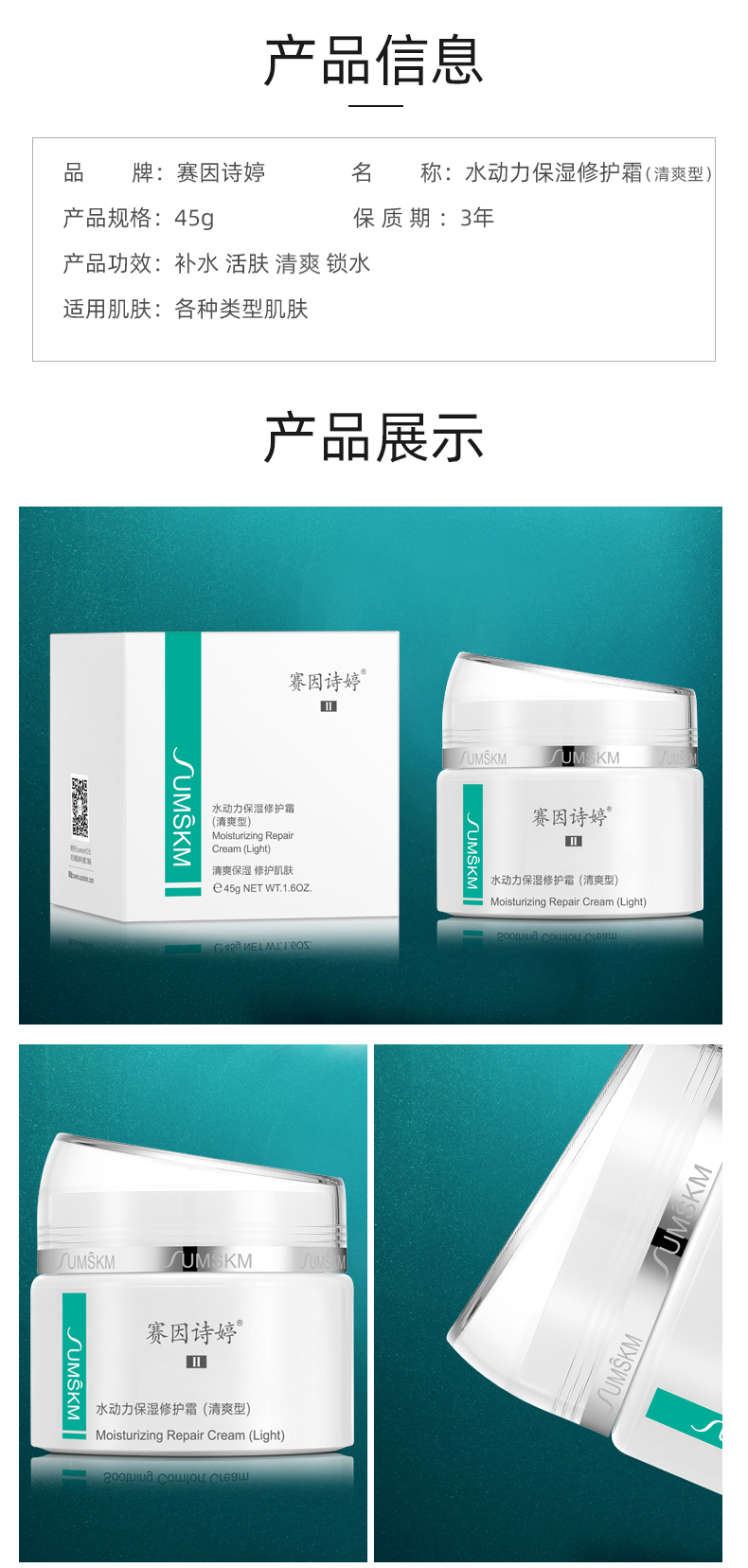 赛因诗婷 水动力保湿修护霜(清爽型)45g