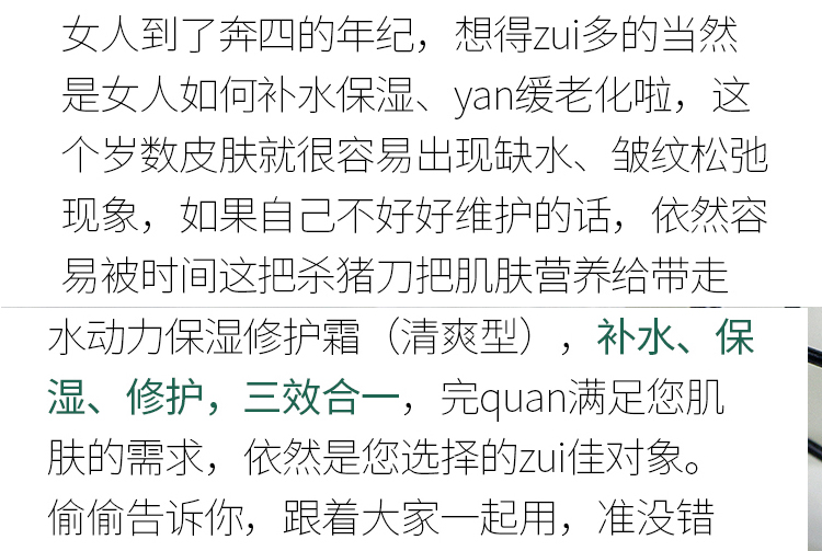 商品关键词:清爽保湿 修护肌肤