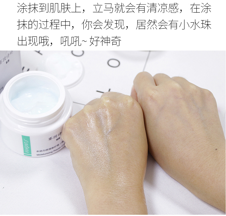 ①采用油包水的生产工艺,质感绵滑的霜状质地,小水分子成分即时渗透,由内活化肤质,舒解肌肤疲劳和压力。