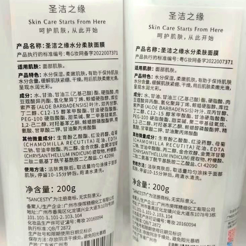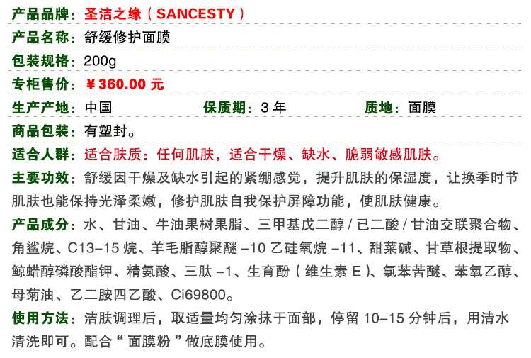 圣洁之缘 水分柔肤面膜200g(舒缓修复面膜)