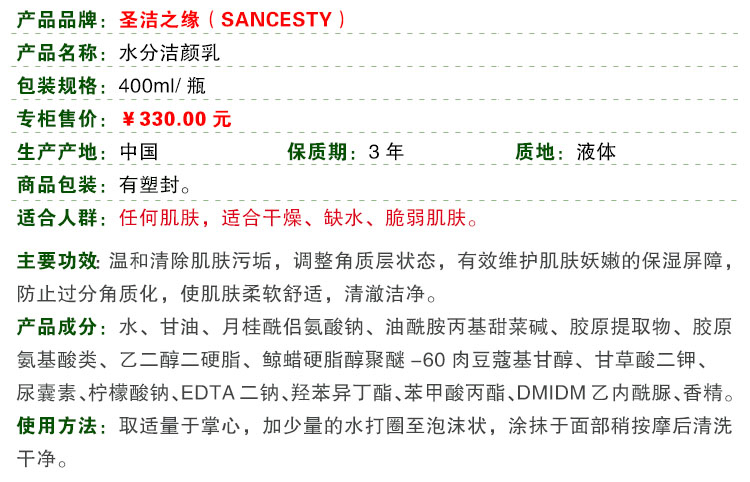 圣洁之缘 盈润补水洁颜乳100ml 清洁毛孔内油脂及污垢、净透无瑕、水润细滑