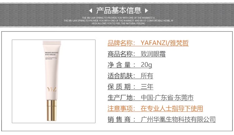 使用方法:取适量本品用于眼部四周,轻轻按摩至吸收。