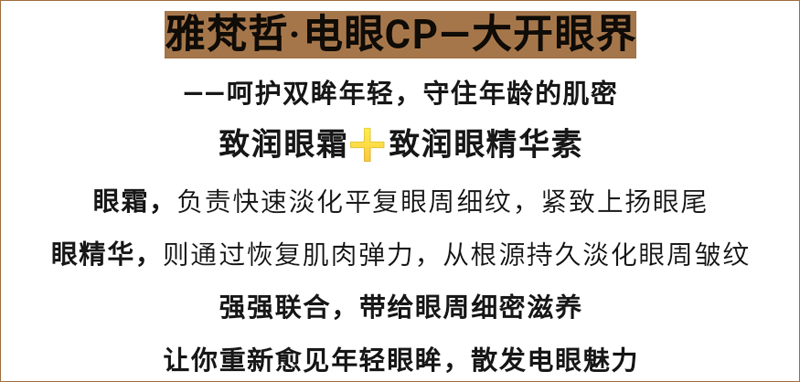 适合肌肤:眼部松弛、下垂、眼纹、眼袋、黑眼圈及眼部干燥的人群。