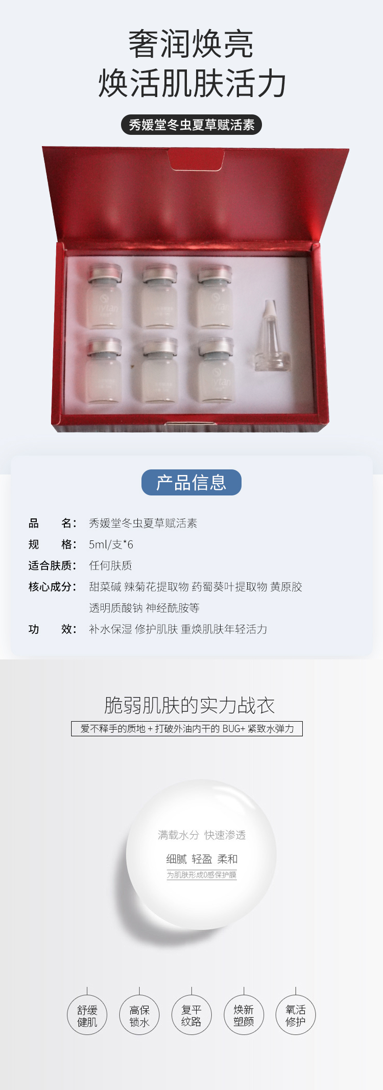 秀媛堂 雪莲赋活精华素5ml*6支 淡化斑点,提亮肤色,改善暗黄,水嫩白皙
