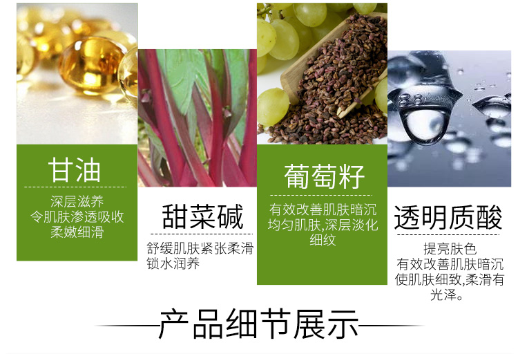 产品功效:独有的汉药成份及特殊的养肌机理,有利于深度清洁调理肌肤、保持充足的储水状态,增加肌肤弹性与活力,改善皱纹,是洁肤后养肤前的高调理,保湿品。清洁调理肌肤,平衡肌肤PH值,保持皮肤充足的含水量,增加肌肤弹性与活力,令肌肤充满透明光泽。