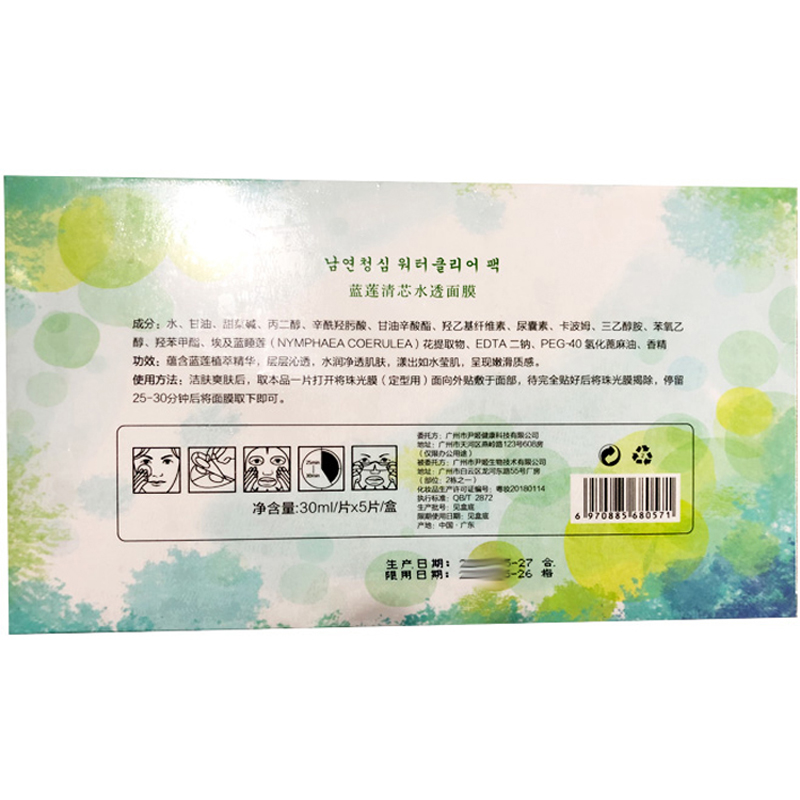 尹姬 蓝莲清芯水透面膜30ml*5片 植物精华,层层沁透,水润净透,嫩滑质感