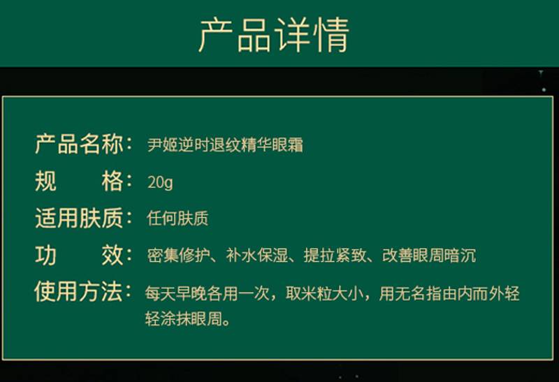尹姬 逆时退纹精华眼霜20g 质地细腻、舒缓眼周干燥、水嫩柔滑、弹性光泽