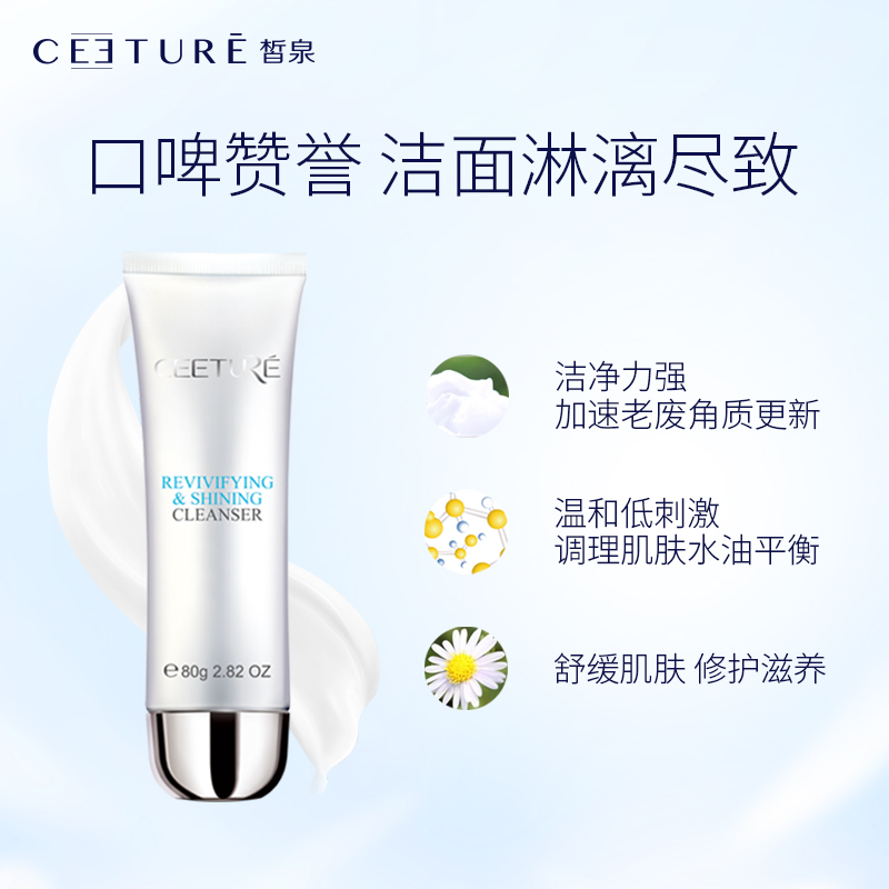 皙泉 7倍水海萃盈透洁颜霜80g 弱酸性丰富泡沫、清洁污垢、控油去痘、盈润舒缓、...