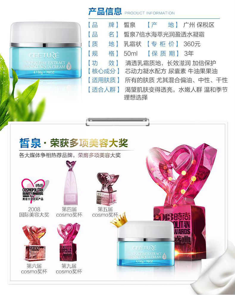皙泉 7倍水光润盈透霜50g(日霜)抵御白天干燥气候、深层锁水、提亮肤色、柔润亮...