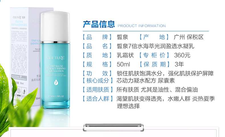 皙泉 7倍水海萃柔润盈透乳50ml(滋润型)长效滋润、补水保湿、盈润透亮、水润光...
