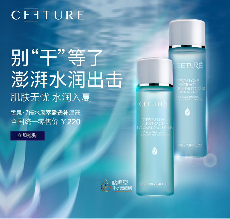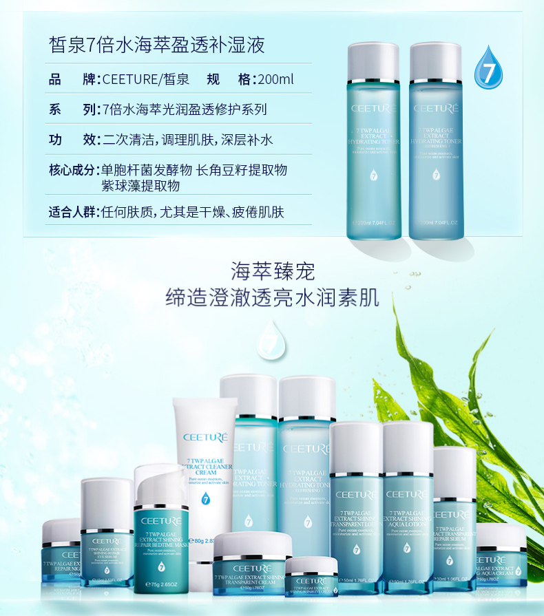 皙泉 7倍水海萃光润盈透水凝乳50ml(清爽型)平衡水油、深层补水、光润透亮、通...
