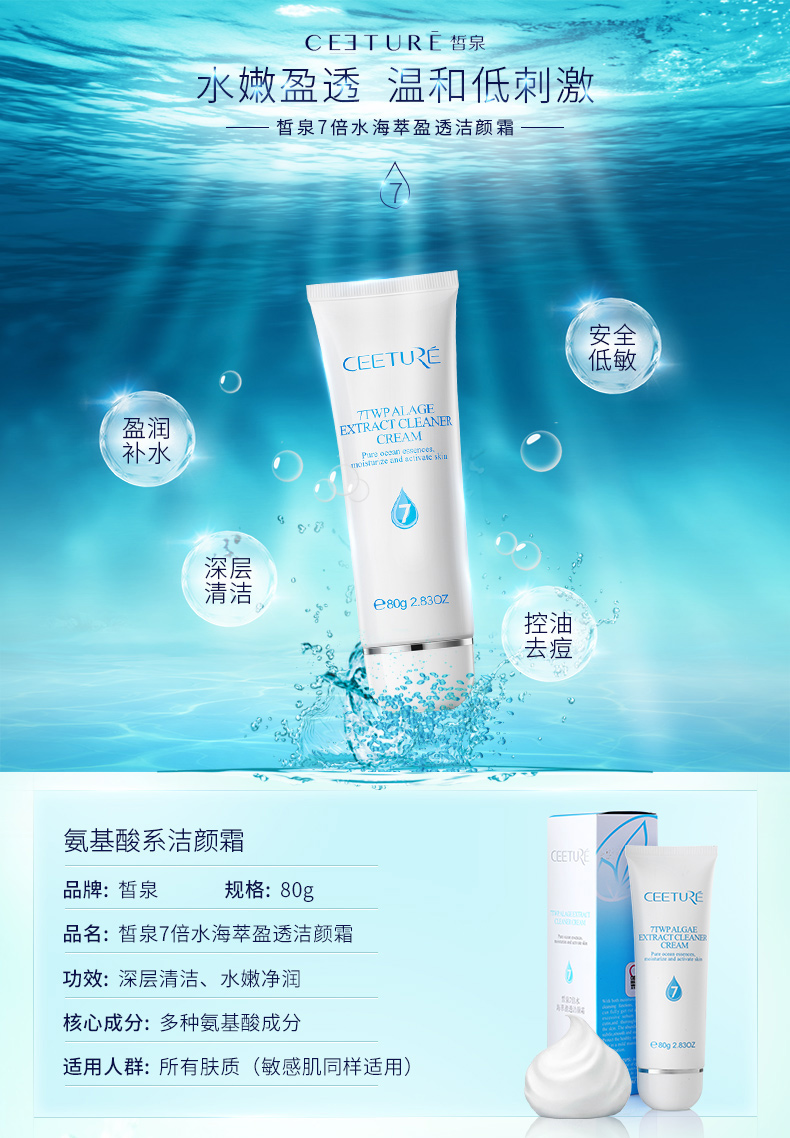 皙泉 7倍水光润水凝霜50g(清爽型)乳霜质地、平衡水油、清爽易吸收、轻盈嫩滑透...