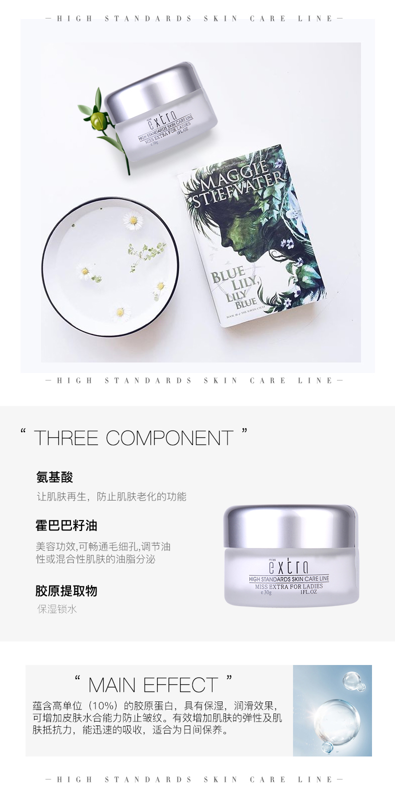 产品特点:给肌肤补充高营养,促进肌底焕新。蕴含核酸与氨基酸,对肌肤有促进新生、防止肌肤老化功能。能在肌肤晚间黄金时间,供给高营养供肌底吸收,帮助新生肌底活跃性及完整性,令肌肤越来越年轻。时光倒流淡皱霜浓缩绿茶提取液,燕麦葡萄糖,提供给肌底高能量营养素,从根本上阻止肌底老化,淡皱,滋养,抗老化。润泽保湿润肤霜磷脂囊,生化醣醛酸,胶原蛋白,有效改善皮肤水分、弹性和滋润。